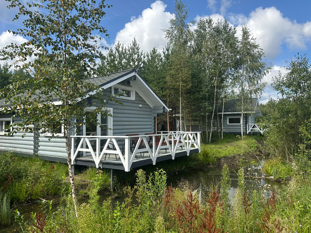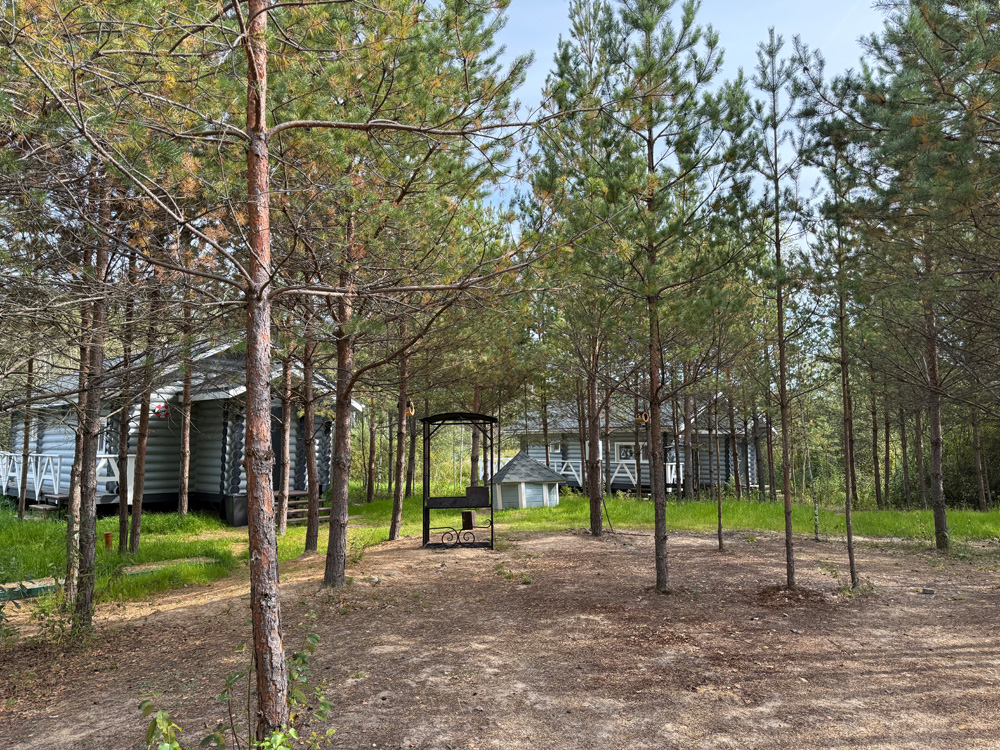 Отдельно стоящие коттеджи площадью 110 м2. Прихожая, гостиная, три спальни, душ, туалет, сауна, веранда со столом и лавочками. Микроволновка, холодильник, телевизор.