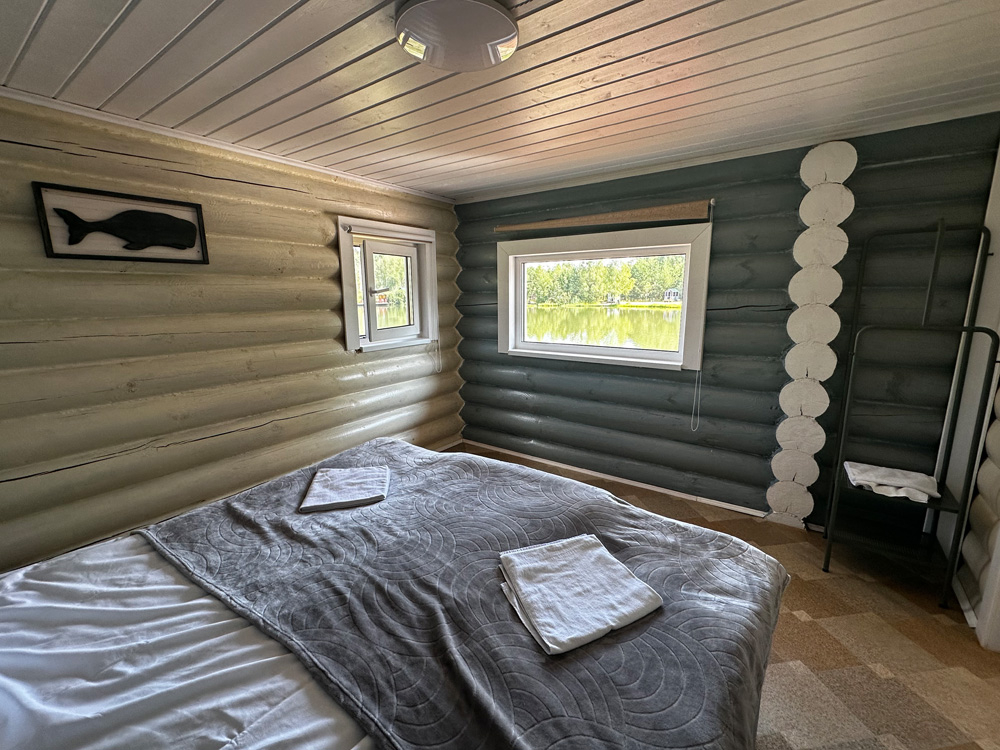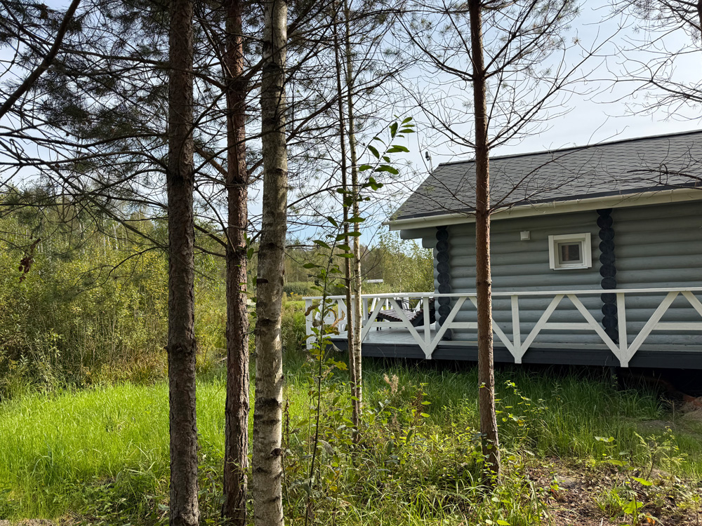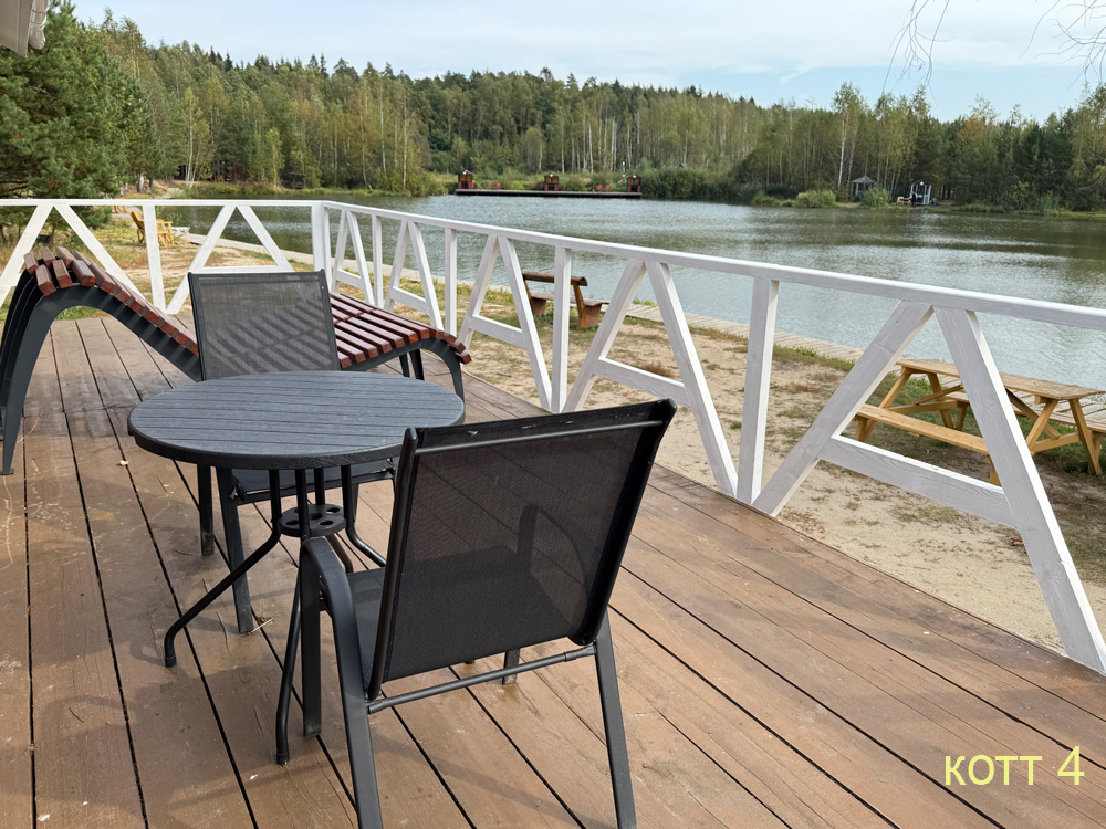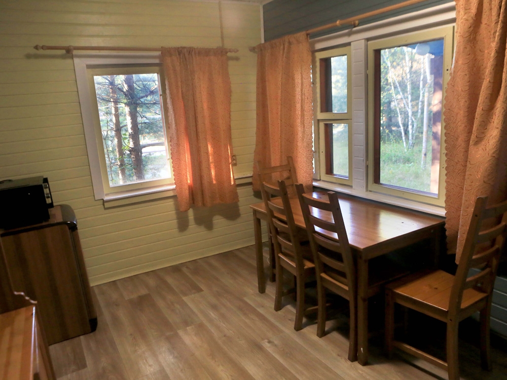Отдельно стоящие коттеджи площадью 40 м2. Гостиная, отдельная спальня, спальня - полати, душ, туалет, веранда со столом и шезлонгами. Микроволновка, холодильник, телевизор.